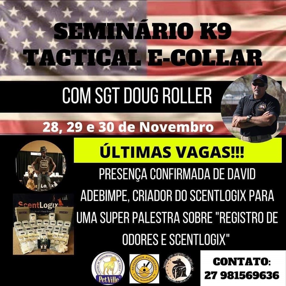 O seminário será ministrado até o dia 30 de novembro pelo SGT Doug Roller, ex-instrutor chefe da Divisão K9 da Polícia de Los Angeles, EUA, e ainda contará com a participação do PhD David Adebimpe, cientista, pesquisador e inventor de várias ferramentas auxiliares para treinamento de detecção de odores, entre elas o SCENTLOGIX™ K9 ScentKit Collection, cujos kits atualmente são considerados o “padrão ouro” no treinamento de cães para detecção de narcóticos e explosivos.
