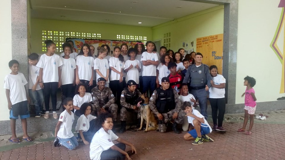 Na tarde desta sexta-feira (08), uma guarnição da companhia Independe de Operações com Cães – CIOC, em parceria com o 1º BPM, realizou uma apresentação com cães no Projeto Social Patrulha Mirim no Cajun do bairro Nova Palestina em Vitória. Na oportunidade as crianças e adolescentes que participam do Projeto puderam interagir ainda mais com os policiais e os seus cães, tiraram fotos e se divertiram com os semoventes.