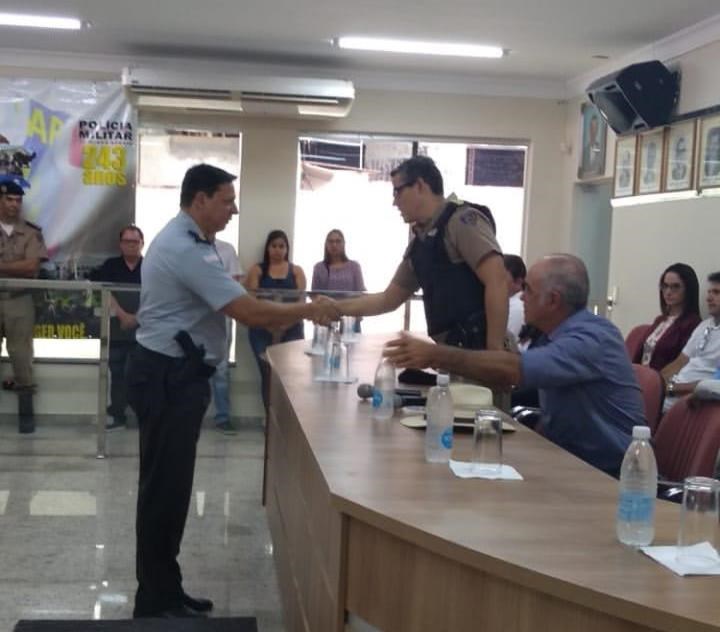 O comandante e o subcomandante do 11º Batalhão da Polícia Militar, tenente-coronel Luciano Silva Suave e o major Jefson Coelho Correia, participaram na manhã desta terça-feira (15/01), da solenidade de Passagem de Comando da 18ª Cia PM Ind., localizada em Mantena/MG.