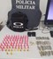 Já no bairro Hélio Ferraz, militares visualizaram alguns suspeitos em uma praça e realizaram a abordagem. Na bolsa de um dos suspeitos foram encontrados 68 pinos de cocaína, 37 buchas de maconha, 17 pedras de crack, além de duas baterias de rádio comunicador.