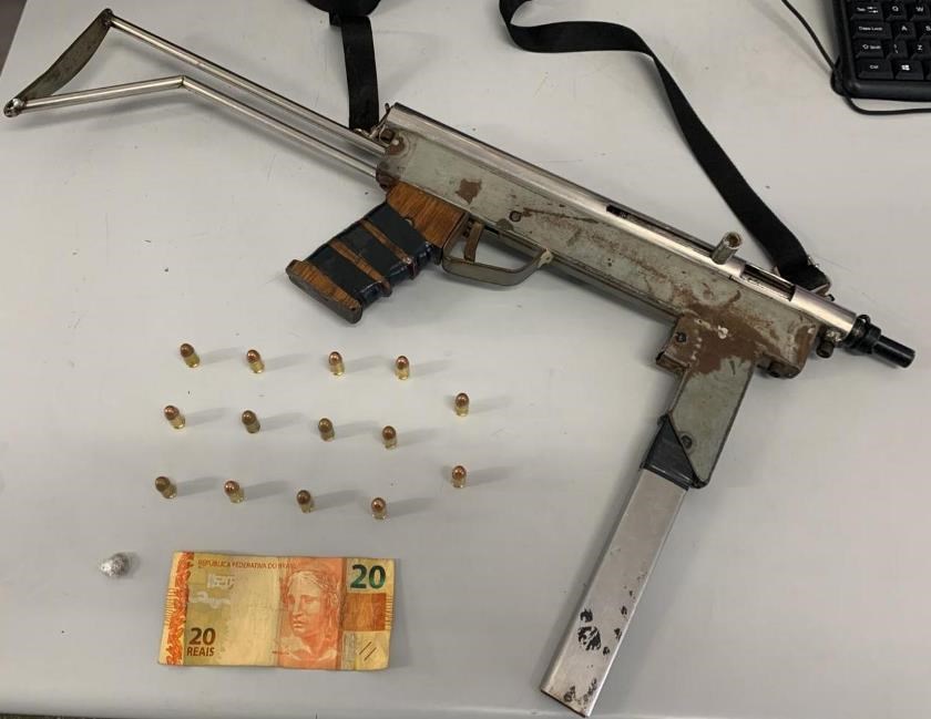 Na sexta-feira (25), durante patrulhamento no bairro Camará, militares abordaram um suspeito e apreenderam uma metralhadora calibre 380, com 14 munições e uma bucha de maconha.