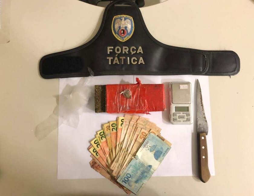 Os militares foram averiguar as denúncias e flagraram A. M. O. e H. R. O. comercializando drogas. Foram apreendidos um tablete e uma bucha de maconha, R$1.071,00 fracionados e materiais utilizados para preparo e embalo das drogas.
