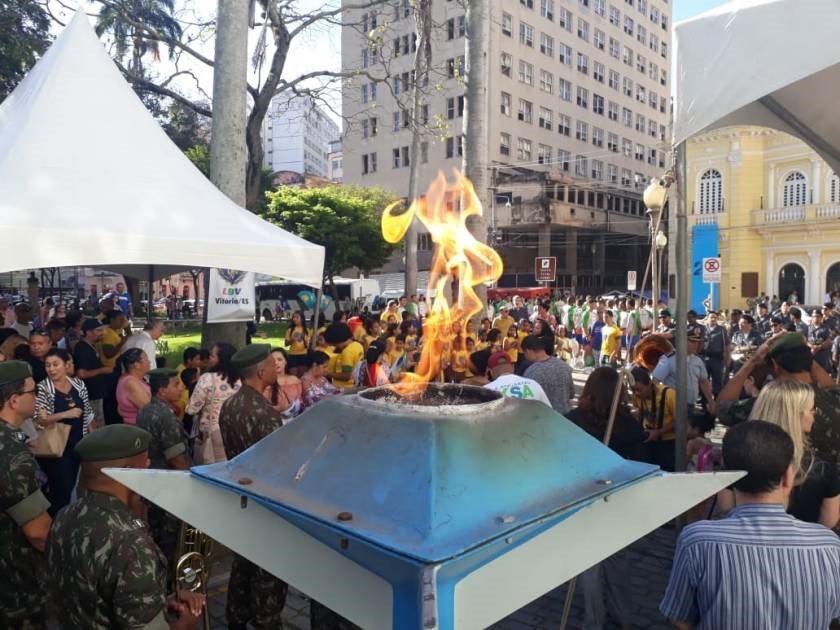 Marcando o início das comemorações da Semana Pátria, foram realizados na tarde desta sexta-feira (31), o duelo musical de bandas militares e a solenidade do Fogo Simbólico da Pátria. Os dois eventos foram abertos ao público e aconteceram na Praça Costa Pereira, em Vitória, às 14h30.