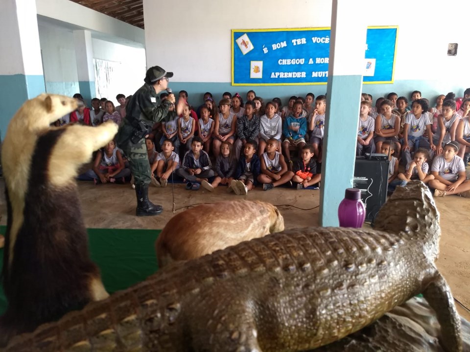Nesta terça-feira (23), a equipe de Educação Ambiental da Terceira Companhia do Batalhão de Polícia Militar Ambiental, realizou palestras e exposição de animais taxidermizados na escola do KM 28, zona rural do município de São Mateus – ES, para alunos do 1º ao 4º ano do ensino fundamental.