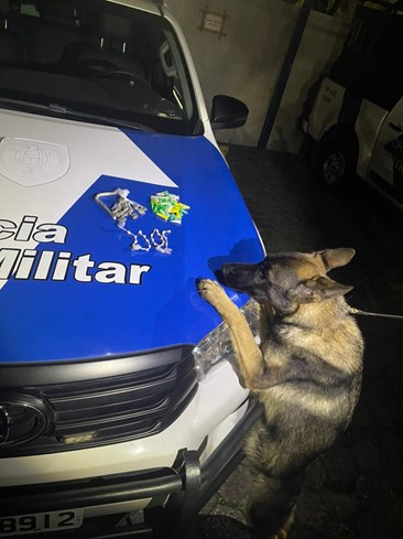 No sábado (17), durante patrulhamento preventivo da equipe FT K9, no bairro Parque Industrial, Atlântica Ville, os militares utilizaram o cão de faro por baixo de um dos prédios ali existentes e lograram êxito ao encontrar 37 buchas de maconha e oito pinos de cocaína.