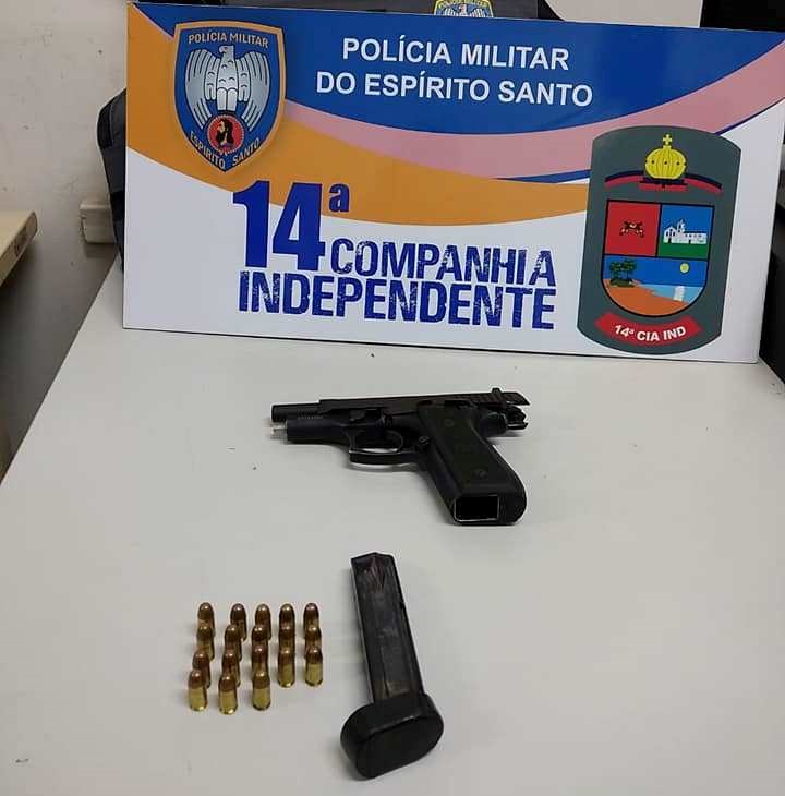 Na madrugada deste domingo (24), durante patrulhamento no Bairro Das Laranjeiras, região de Jacaraípe, no município de Serra, militares da Força Tática da 14ª Companhia Independente apreenderam uma pistola calibre 380.