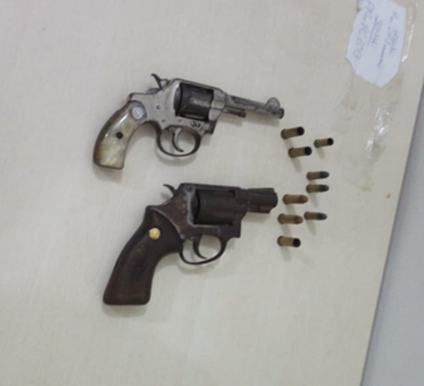 Com o grupo foram apreendidos um revólver calibre 38, com cinco cartuchos e um revólver calibre 32, com quatro munições, e o veículo Gol.