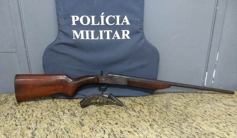 Os militares encontraram o homem após receberem denúncia anônima. Na residência dele foram apreendidas uma espingarda calibre 38 e uma garrucha de calibre 22.