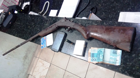 Durante a abordagem, os militares encontraram com o homem um cartucho de espingarda calibre 28. Ao ser questionado sobre a espingarda, o suspeito acabou confessando o furto e que havia escondido a arma numa mata.