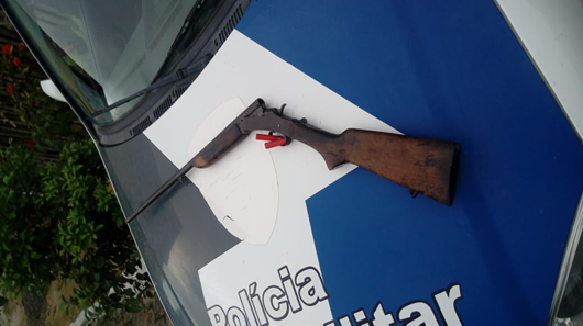 M.A.S., de 32 anos, foi preso após denúncia de que ele possuía uma espingarda e estava ameaçando sua esposa de morte. Quando os militares chegaram ao local, a mulher contou que o marido vinha agredindo-a fisicamente com socos, chutes e tapas. Ela entregou a espingarda calibre 32, que estava embaixo da cama.