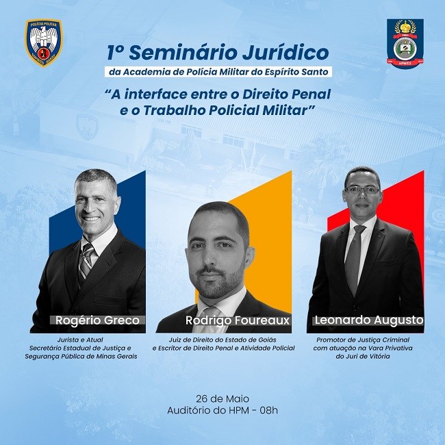 Promovido por alunos do 2º ano do Curso de Formação de Oficiais (CFO 2), o seminário terá como temática “A interface entre o Direito Penal e o trabalho policial militar”. O evento será destinado a militares, autoridades convidadas, professores e acadêmicos do curso de Direito.