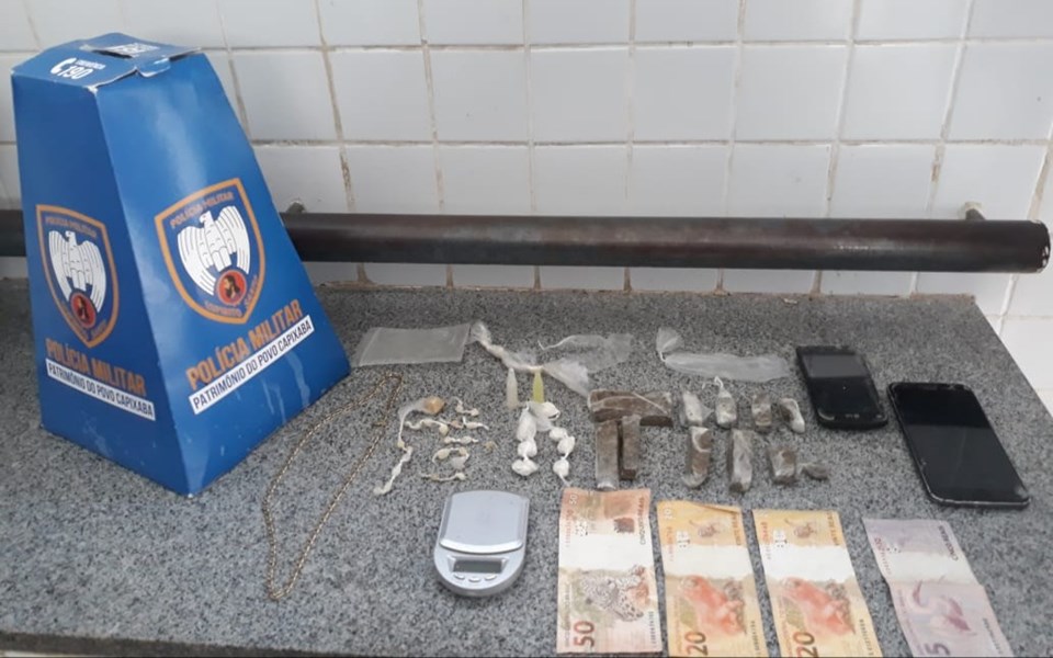 No local, os militares abordaram quatro pessoas, sendo que com um dos abordados foi encontrado uma pedra de crack e um pino de cocaína e uma quantia em dinheiro trocado. Com o outro abordado, menor de idade, foi encontrado uma bucha de maconha.