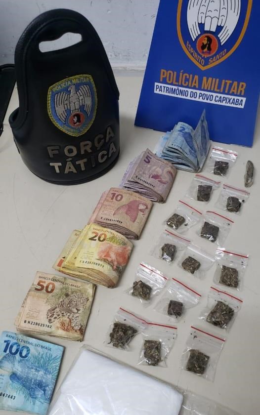 A ocorrência teve início durante patrulhamento tático pela rua Bariri. No local, os policiais visualizaram suspeitos parados em uma esquina. Eles foram abordados e os policiais localizaram 15 buchas de maconha; R$ 1.464 em espécie e material para embalo de entorpecentes. Um homem foi detido na ação.