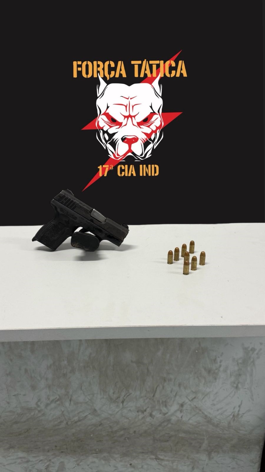 Policiais militares da Força Tática da 17ª Cia Independente apreenderam arma de fogo durante patrulhamento a pé realizado na noite de ontem (04), no bairro Cobi de Cima, em Vila Velha.