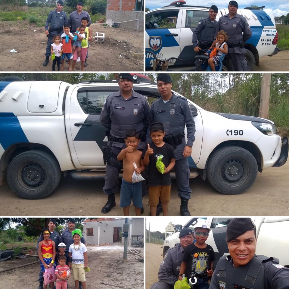 Na manhã desta sexta-feira (11), policiais militares do 5º Batalhão realizaram, voluntariamente, uma ação solidária com o objetivo de promover um “Dia das Crianças” mais feliz para as crianças carentes das localidades rurais do município de Aracruz.