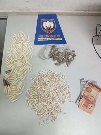 Na verificação de um disque denúncia no bairro Boa Vista, militares da Força Tática visualizaram dois indivíduos arremessando uma sacola em um terreno. Rapidamente foi realizada a abordagem, sendo encontrado com eles algumas unidades de entorpecentes. Verificado o conteúdo da sacola foram encontradas 26 buchas de maconha, 138 pinos de cocaína e 276 pedras de crack, além de R$43,00 em espécie.