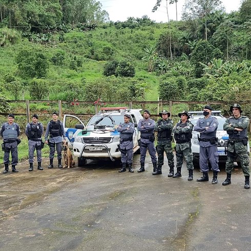 Nas ações os militares contaram com o apoio da Equipe K9 com a Cadela Alga, que realizou buscas nas residências e terrenos, visto que as denúncias descreviam que alguns materiais estariam enterrados.