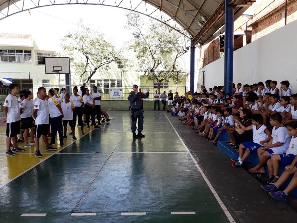 Na manhã desta sexta-feira (20), os alunos do projeto Patrulha Mirim apresentaram-se na EMEF “Izaura Marques da Silva”, em Andorinhas, mostrando aos presentes os ensinamentos adquiridos no projeto. Também apresentaram o famoso HOOPE, uma ordem unida lúdica criada pelo subtenente Marcílio Suhett do Amaral.