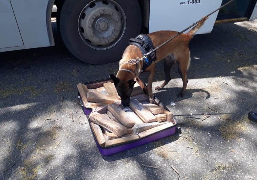 O coletivo fazia o trajeto São Paulo x Vitória. Após a devida abordagem, foi empregada a cadela de faro de armas e drogas, Kira. No compartimento de bagagem ela indicou uma mala de viagem na cor rosa, sendo identificada a proprietária.
