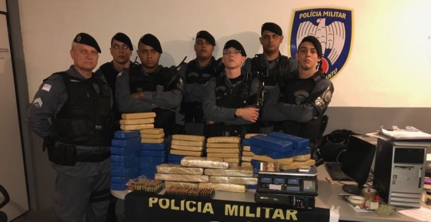Durante as buscas no interior de uma construção abandonada localizado no terreno baldio, os militares encontraram bolsas de viagem contendo 62 tabletes de maconha pesando 42,1 kg do entorpecente e uma sacola plástica com 93 munições de calibre 7.62 mm e 194 munições de calibre 30 mm. Além disso, a equipe apreendeu também duas balanças, 20 buchas de maconha e um fogareiro.