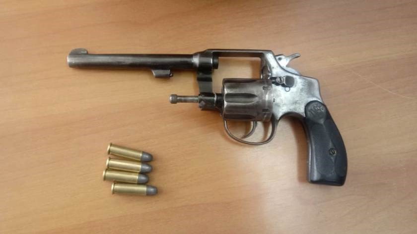 A arma de fogo é um revólver, calibre 38, municiado com quatro munições intactas.