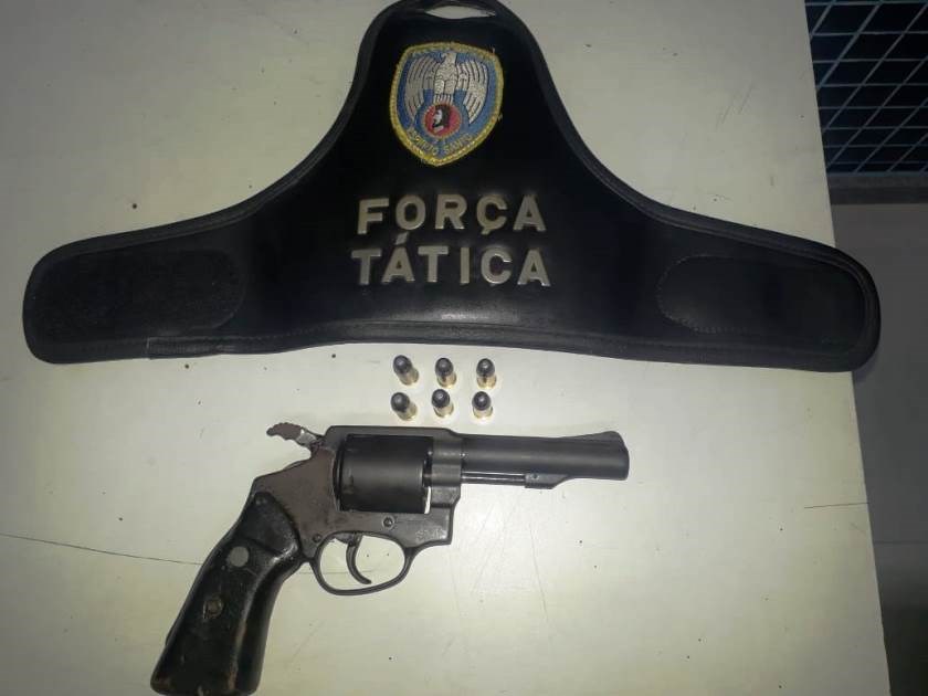 A ação foi no bairro 1º de Maio, quando uma equipe realizou abordagem a um suspeito. Ele foi abordado em frente a sua residência e acabou confessando que dentro de sua casa havia uma arma. No local foi encontrado um revólver calibre 38 com seis munições.
