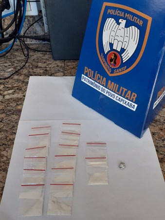 Pela manhã, por volta das 11h, policiais militares prosseguiram ao bairro Aeroporto para verificar uma denúncia. Ao chegar, um indivíduo de 34 anos foi abordado em posse de uma pequena quantidade de crack. O suspeito mentiu para os policiais fornecendo um nome falso, mas foi devidamente identificado após verificações. O mesmo já foi preso anteriormente por atentar contra a vida de um policial militar. Em busca nas proximidades do local da abordagem, foi localizado 14 envelopes de cocaína no interior de um padrão de energia. O homem foi detido.