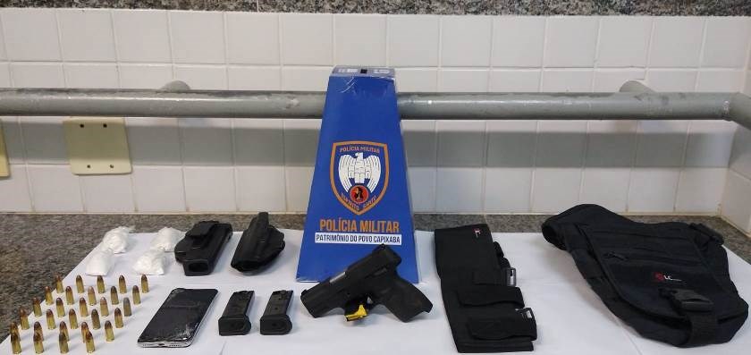 A ação ocorreu durante a noite, por volta das 22h quando os militares faziam o patrulhamento pelo bairro São José. A guarnição avistou um veículo sendo conduzido por um suspeito de ter envolvimento com o tráfico de drogas. O suspeito abandonou o veículo e fugiu em direção a uma mata. A companheira do suspeito se apresentou no local e acompanhou os militares até a residência, onde foi localizado uma pistola 9mm, três carregadores da pistola, 29 munições do mesmo calibre, dois coldres de pistola, quatro porções de cocaína, uma cinta coldre, um bonal coldre, um aparelho smartphone e material para embalo de entorpecentes.