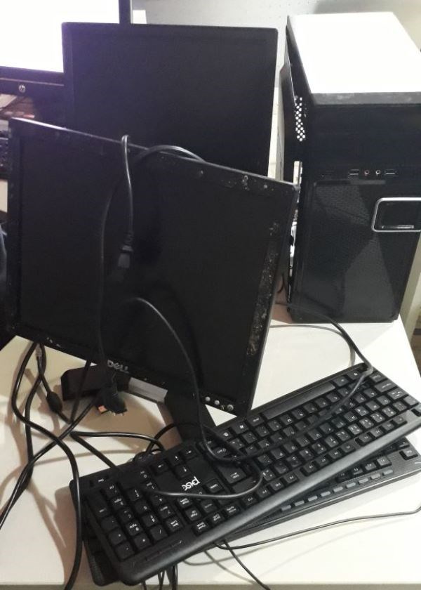 Próximo ao mesmo endereço, outra guarnição que realizava patrulhamento preventivo, avistou um suspeito em uma bicicleta, segurando uma lixeira. Ao ser abordado foi constatado que no interior do recipiente havia dois monitores de computador, um CPU e outros periféricos, que teriam sido furtados de um estabelecimento comercial momentos antes.