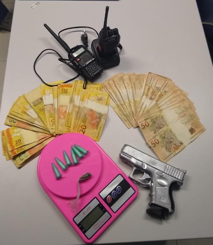 Já na tarde de sexta-feira (12), em operação integrada com a Polícia Civil de Alfredo Chaves, os militares da 10ª Companhia Independente, em averiguação a denúncias de tráfico de drogas, apreenderam um simulacro de arma de fogo, seis pinos de cocaína, três buchas de maconha, uma balança de precisão, dois rádios comunicadores, além de grande quantia em dinheiro.