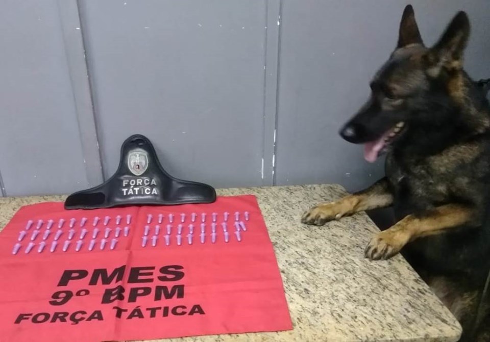 No começo da tarde, no bairro Bela Vista, a Equipe K9 prosseguiu à Rua Argentina Modesta para averiguar denúncia de tráfico de drogas. No local, foi realizado o emprego do cão farejador Messi que obteve êxito em localizar em meio ao lixo uma sacola contendo 58 pinos de cocaína.