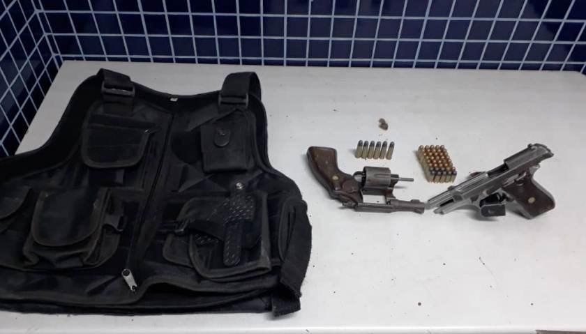 Com os detidos foram apreendidos um revólver Taurus com seis munições intactas, uma pistola Taurus PT-58 calibre 380 com 12 munições do mesmo calibre e outras 28 munições calibre 380, além de um colete balístico em perfeita condições.