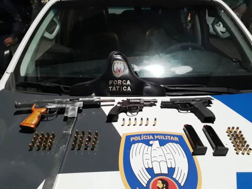 Policiais militares do 1º Batalhão apreenderam armas, munições e entorpecentes em diversas operações realizadas nos bairros de Vitória durante os dias de folia do Carnaval.