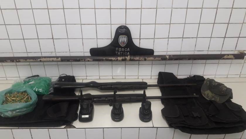 As informações recebidas foram checadas pelo Serviço de Inteligência da Unidade. As armas foram localizadas no bairro Planalto Serrano, sendo duas carabinas calibre 38, dois carregadores, rádios comunicadores e vários pinos para o embalo e comércio de entorpecentes. Segundo informações, no endereço citado nas denúncias havia pessoas realizando o tráfico de drogas e utilizando armas de fogo, porém o jovem suspeito não foi localizado.