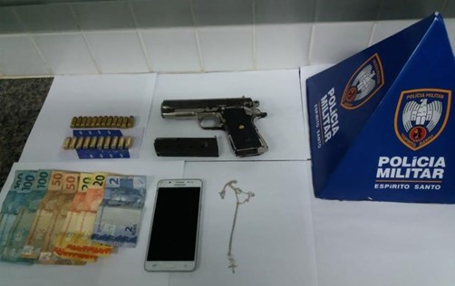 Na noite de sábado (11), um homem tentou esconder algo dentro de uma lanchonete, no bairro Adalberto Simão Nader, ao avistar a guarnição da PM. Durante as buscas foi encontrada na cintura do suspeito uma pistola calibre 380, com 10 munições intactas. Nas proximidades foram localizadas mais 12 munições do mesmo calibre. Contra o suspeito também foi constatado um mandado de prisão em aberto pelo crime de associação ao tráfico.