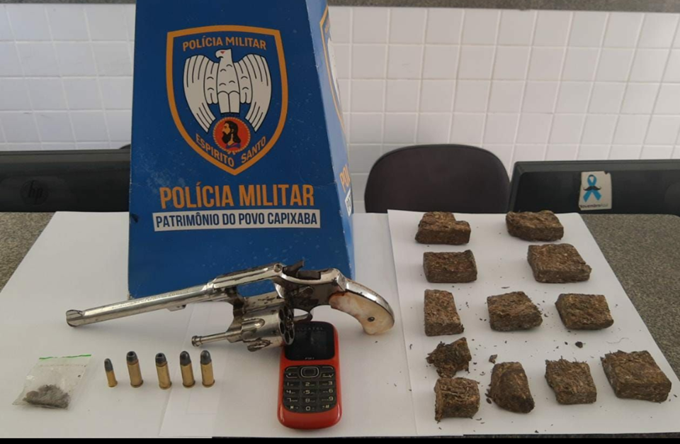 Na ocasião, os militares apreenderam um revólver calibre 32, quatro munições do mesmo calibre, além de uma calibre 22, 13 porções de maconha e um aparelho celular.