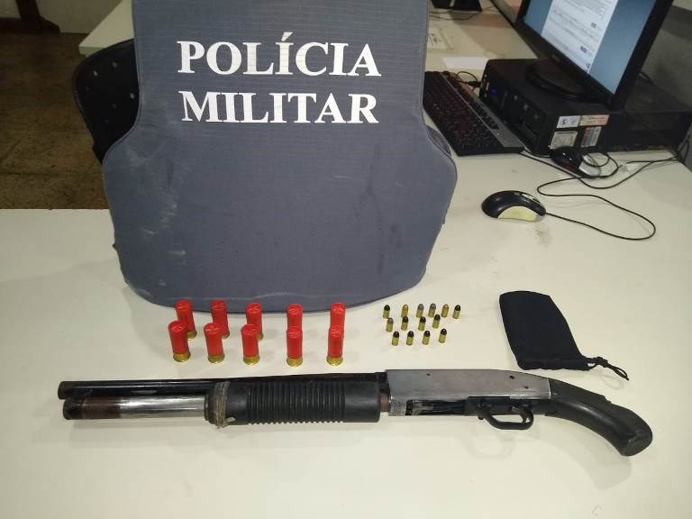 Em outra ocorrência, após apurar denúncias de tráfico de drogas e também na sexta-feira, no bairro Resistência, a guarnição realizou a abordagem de vários indivíduos e encontrou em um terreno baldio uma espingarda calibre 12, 10 munições do mesmo calibre e 14 munições calibre 380.