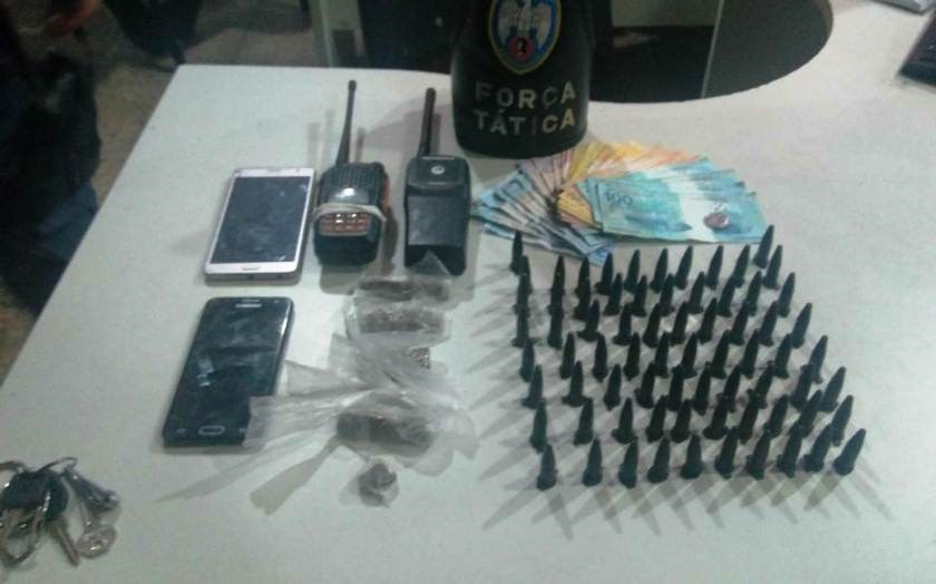 Em outras ocorrências na área da Unidade foram apreendidos três rádios comunicadores, três aparelhos celulares, 82 pinos de cocaína, 38 buchas de maconha, 24 pedras de crack, aproximadamente R$ 1.200,00 em espécie e quatro pessoas foram detidas por tráfico de drogas.