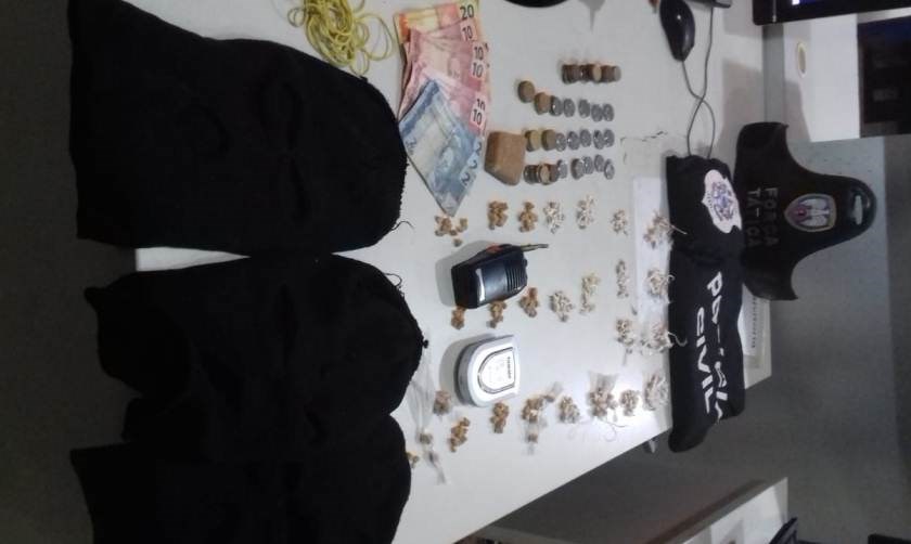 No bairro Jesus de Nazareth, uma equipe da Força Tática encontrou um indivíduo que desobedeceu a ordem de abordagem e fugiu. Durante acompanhamento, o homem deixou cair uma sacola contendo 234 pedras de crack, duas camisas da Polícia Civil, três toucas ninja, uma balança de precisão, um rádio comunicador e R$ 101,00 em espécie.