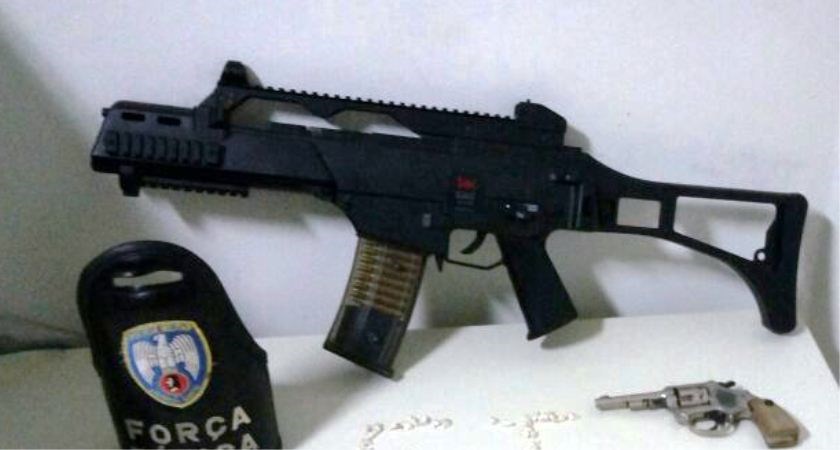 No beco onde os suspeitos estavam, policiais encontraram uma sacola azul contendo 65 pedras de crack e 3 pedaços de maconha. Dentro de uma residência foram localizados 30 papelotes de cocaína escondidos dentro de um sapato. Em uma gaveta do guarda-roupa foi achado o revólver calibre 22, e o simulacro do fuzil encontrado em um dos cômodos da casa. A moradora do local, E.F.S., 29 anos, foi detida.