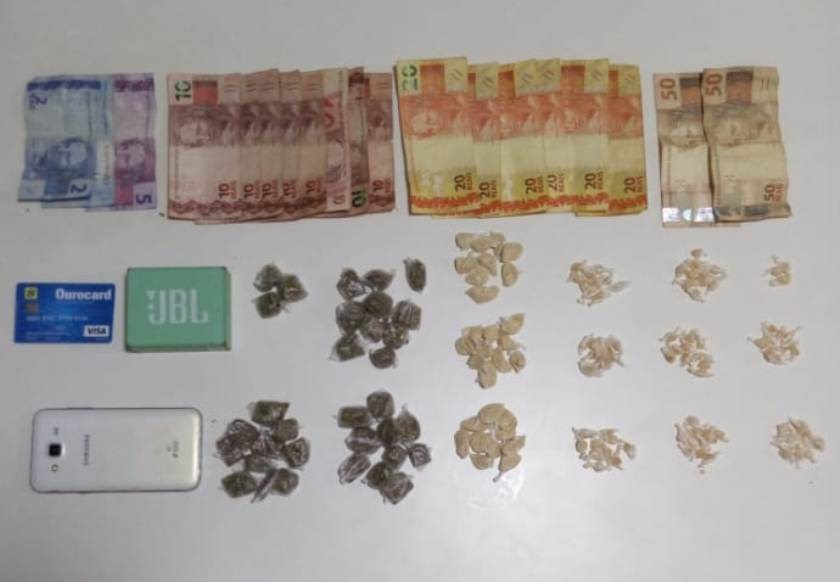 Já na sexta (1º), a equipe da radiopatrulha e os agentes do Serviço Reservado da unidade receberam uma denúncia relatando o tráfico de drogas na Rua Merentino Cândido de Souza. No local, foram detidos T.S.O. e E.J.C.A. Com o primeiro rapaz foi recolhida uma bolsa vermelha com a droga e R$310,00 em espécie. O outro detido informou que estava no local para comprar entorpecentes.