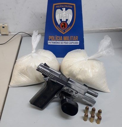 Em Nova Carapina, militares realizavam o patrulhamento na rua Intendente Câmara quando visualizaram um grupo de suspeitos fugindo ao perceberem a aproximação da viatura. Buscas foram feitas no local, sendo encontrada uma pistola .40 com seis munições e uma sacola contendo cocaína.