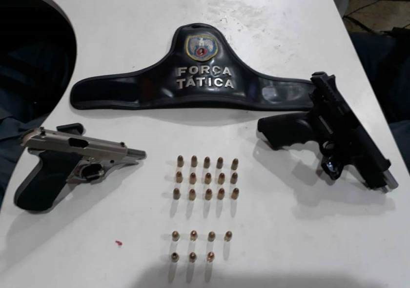 A apreensão aconteceu após os policiais realizarem incursão em um beco do bairro Itararé e visualizarem um indivíduo tentar fugir adentrando em uma residência. N.M.A., 19 anos, foi alcançado e detido portando uma pistola G-Cherokee 9 mm de fabricação israelense com 15 munições intactas e uma pistola Bersa Thunder Plus 380 de fabricação argentina com sete munições intactas.