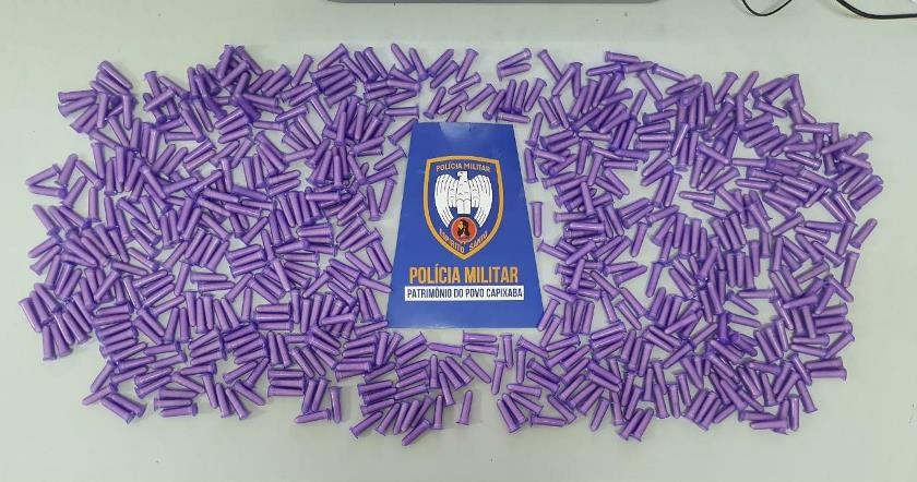 No mesmo bairro, a equipe observou um suspeito dispensando uma sacola e correndo por uma escadaria. Na sacola foram encontrados 645 pinos de cocaína.