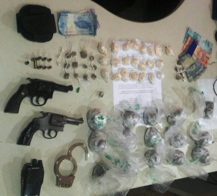 Em Caratoíra, uma equipe se deparou com um adolescente suspeito que foi identificado como D.C.A., 14 anos. Com ele apreenderam dois revólveres calibre 32, 418 buchas de maconha e R$ 212,00 em espécie.