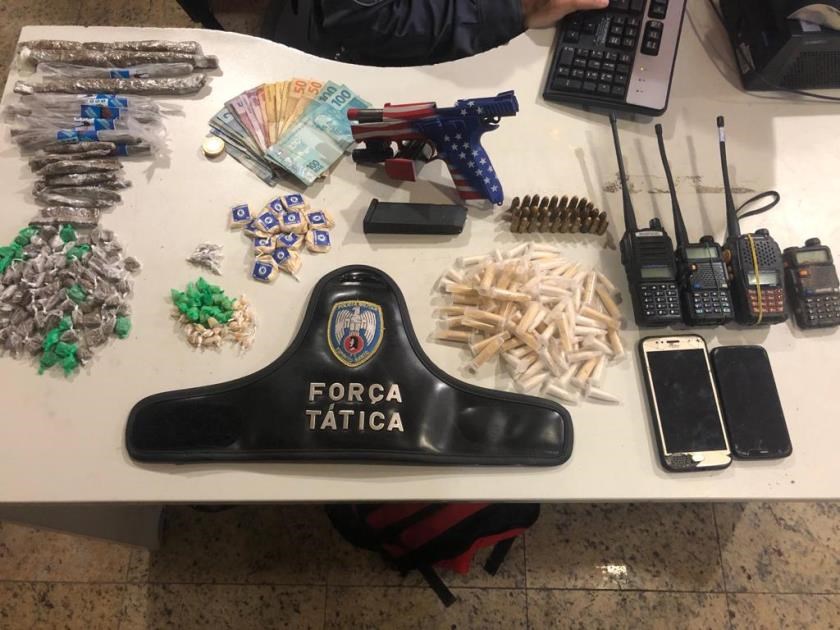 Já no domingo (09), durante patrulhamento a pé no Morro do Macaco, as equipes da Força Tática do 1º Batalhão foram recebidas a disparos de arma de fogo por traficantes locais, sendo necessária a intervenção a fim de cessar a agressão sofrida. Em ato contínuo, os militares abordaram três destes indivíduos que estavam homiziados no local, tratava-se de três adolescentes com idades de 15 a 17 anos. Como resultados da ação foram apreendidos: uma pistola CZ-75 9mm, um carregador com 17 munições, 113 buchas de maconha, 89 pinos e 13 papelotes de cocaína, 41 pedras de crack, 09 pelotas de haxixe, rádios comunicadores e dinheiro em espécie.