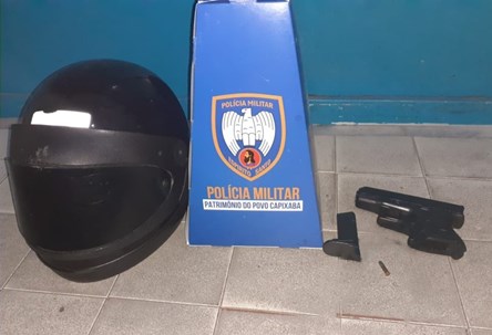 A equipe de serviço que patrulhava o local flagrou o momento em que dois indivíduos a bordo de uma motocicleta, abandonaram o veículo e fugiram pulando muros ao perceber a aproximação da viatura policial. Na fuga, os suspeitos dispensaram um objeto similar a uma arma de fogo.