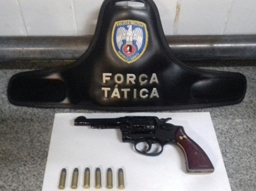 No bairro Edir Moreira, foi apreendido na residência de M.C. um revólver calibre .38 e seis munições do mesmo calibre.