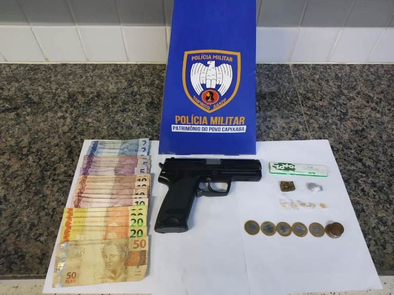 À noite, durante patrulhamento no bairro Santa Rosa, policiais militares abordaram um indivíduo que estava em atitude suspeita e localizaram nove pedras de crack, quatro buchas de maconha e R$80,00 em notas trocadas. O mesmo confessou estar traficando no local.