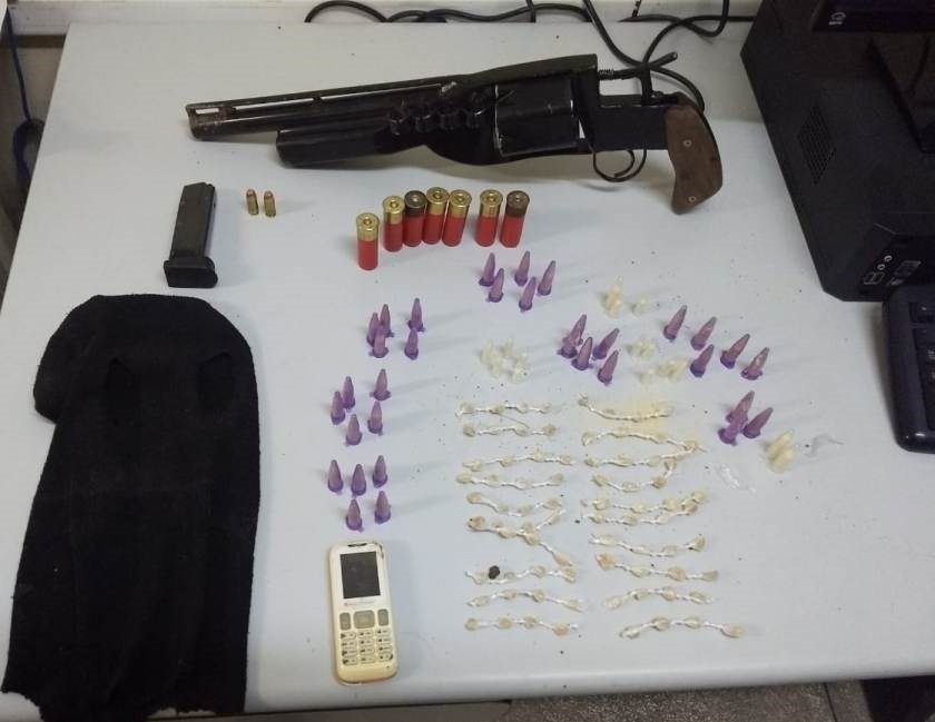 Os policiais encontraram dentro da caixa diversos pinos de cocaína e imediatamente cercaram e abordaram o imóvel. Na casa foram localizados A. V. S., 18 anos; F. C. M., 28 anos e R. F. C., que não portava documentos. Após as buscas, os militares apreenderam 1.320 pinos de cocaína; 94 munições calibre 556; cinco carregadores para fuzil calibre .762; um saco de ácido bórico e vários pinos de plástico vazios. Os três criminosos foram presos em flagrante.